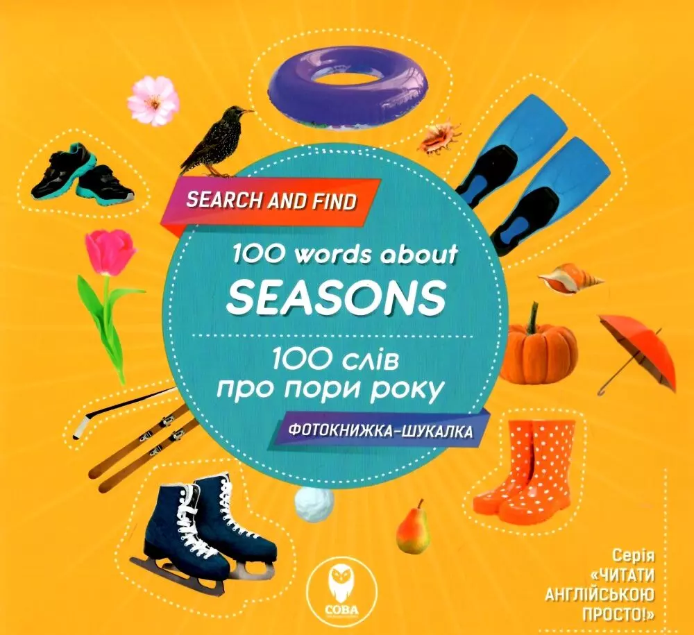 Фотокнижка-шукалка "100 слів про пори року" — це книжка, яка в ігровій формі познайомить дитину з усіма порами року. Разом ви вивчите предмети одягу, а також найпопулярніші слова, що відносяться до кожного періоду. Створена у вигляді фотошукалки, така книжка неодмінно сподобається і малим читачам