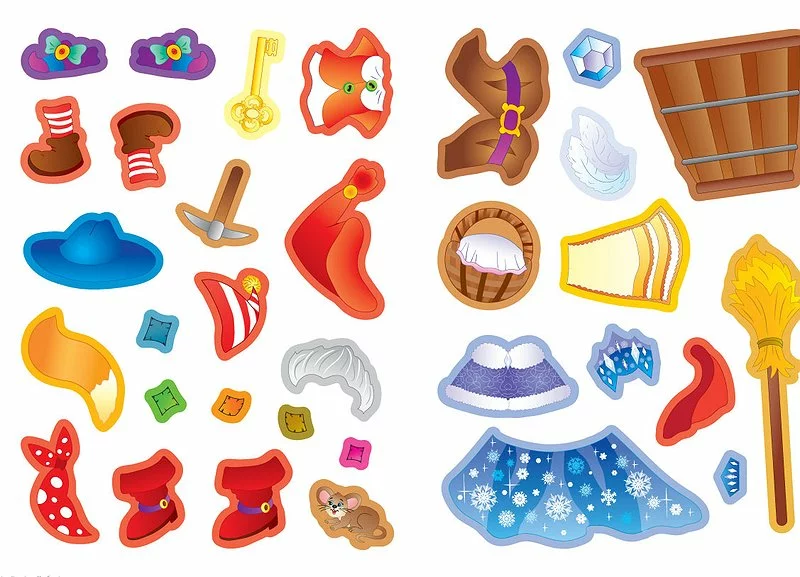 Разом із цим виданням малюк порине в чарівний світ з улюбленими героями казок. Прочитайте разом про пригоди Кота в чоботях чи Буратіно! Користуючись підказками, дитина зможе знайти та додати до малюнку різноманітні деталі: одяг чи взуття персонажів, їхні казкові атрибути, щоб зібрати повне зображення. Щоб правильно розмістити наліпки, звертайте увагу на зразок. А ще з наліпок можна зібрати нового, ні на кого не схожого персонажа! Створюючи кольорову аплікацію, дитина розвиває дрібну моторику та вчиться співвідносити частину й ціле.