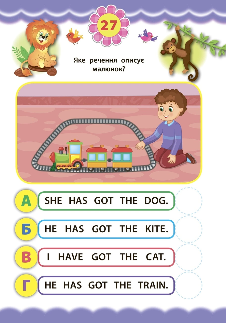 Книжка допоможе визначити рівень знань дитини з англійської мови. Увесь матеріал подано у формі тестів, наявні яскраві ілюстрації та кольорові наліпки, також є перевірочна таблиця та відповіді. Опрацювавши книжку разом з малюком, ви зможете зрозуміти, на скільки дитина готова самостійно здобувати знання в школі.