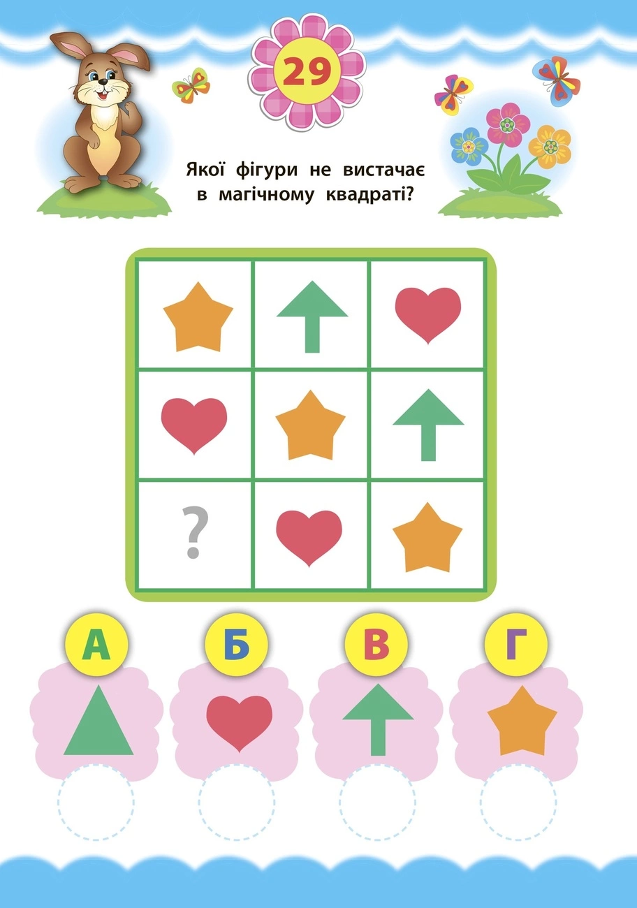 Книжка містить тестові завдання з логіки, які допоможуть визначити рівень знань майбутнього першокласника. Увесь матеріал запропоновано в простій і зрозумілій тестовій формі, наявні яскраві ілюстрації та кольорові наліпки, також є перевірочна таблиця та відповіді. Опрацювавши книжку разом з малюком, ви зможете зрозуміти, на скільки дитина готова самостійно здобувати знання в школі.