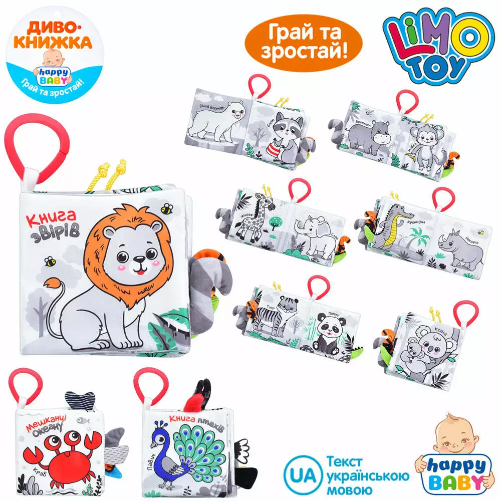 Книга HB 0032 ABС тварини, підвіска, шурудить, пискавка, 3 види, пакет, 19-16-4 см.