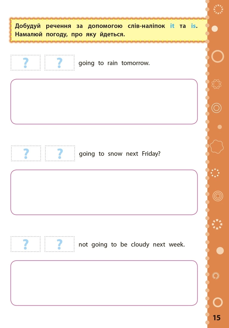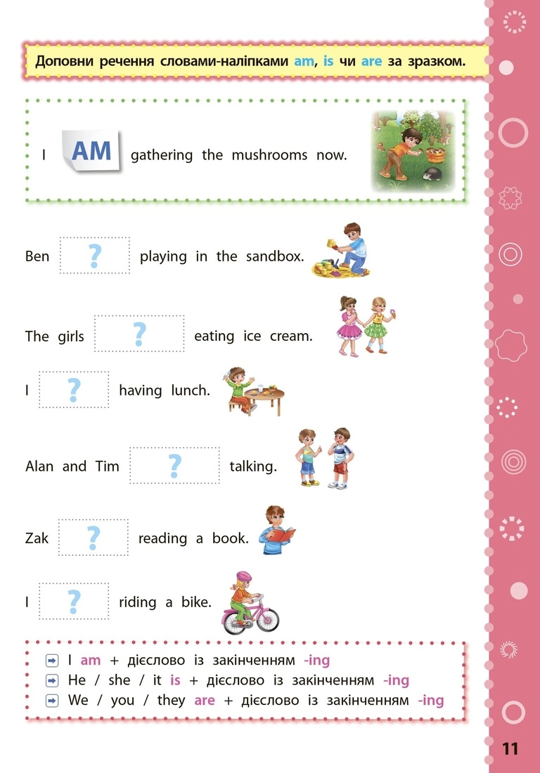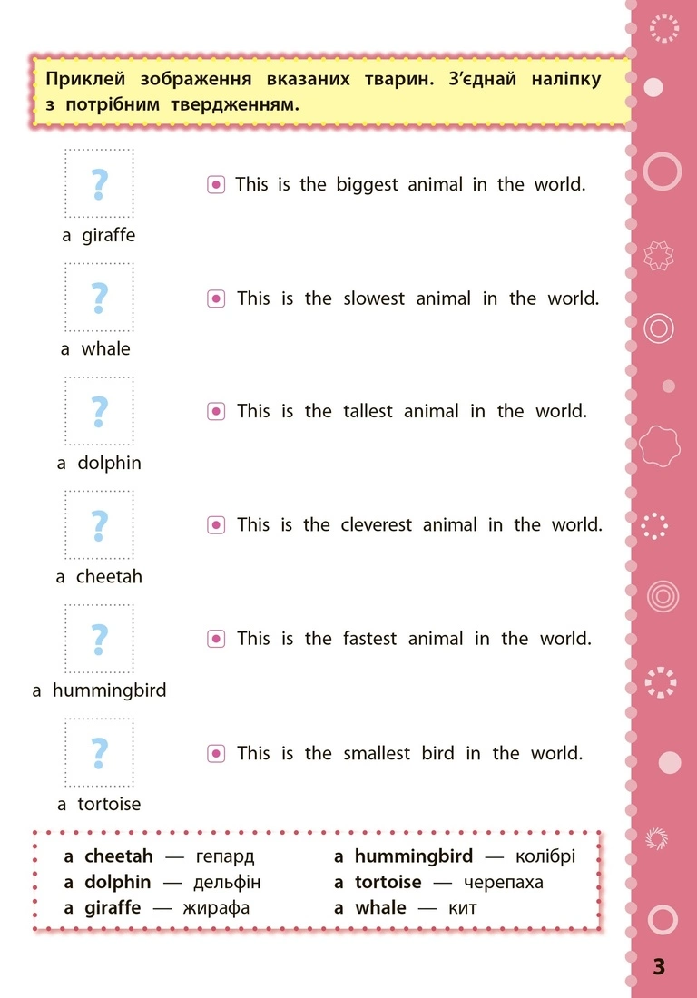 Видання охоплює матеріал 4 класу з предмета «Англійська мова» і відповідає вимогам освітніх програм гуманітарної галузі Нової української школи. Ігрова форма завдань, 100 наліпок і яскраві ілюстрації допоможуть легко сформувати ключові компетентності дитини та закріпити набуті в школі знання. Книжка стане в пригоді молодшим школярам, їхнім батькам і вчителям четвертих класів.