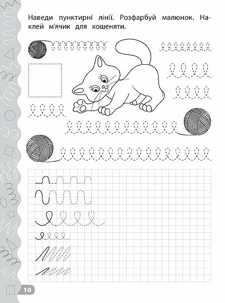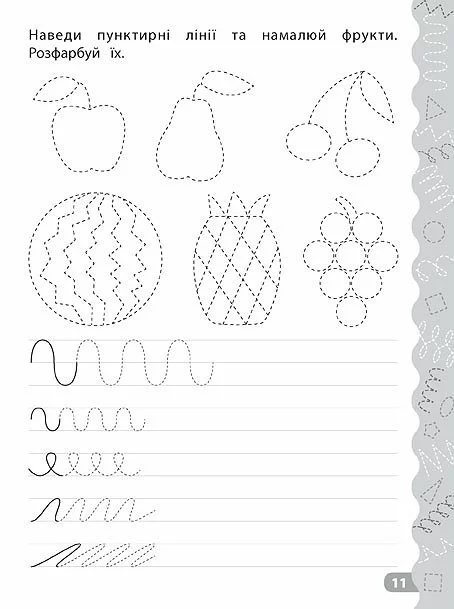 Зошит спрямований на на підготовку руки до письма та розвиток дрібної моторики. Працюючи із цим виданням, дитина зможе не тільки опанувати основні графічні навички — наведення контурів, шитрихування, проведення прямих, кривих та ламаних ліній, малювання по клітинках і лінійках, але й розважитися: виконати захопливі завдання за допомогою наліпок. Прописи призначені для спільної роботи дорослих з дітьми дошкільного віку.