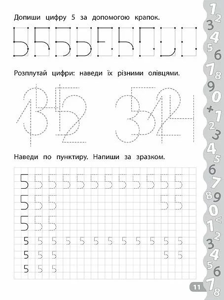Зошит спрямований на розвиток дрібної моторики, навичок письма та усної лічби. Працюючи із цим виданням, дитина зможе не тільки познайомитися з цифрами та навчитися їх писати, потренуватися рахувати в межах 10 та писати графічні диктанти, але й розважитися: виконати захопливі завдання за допомогою наліпок. Прописи призначені для спільної роботи дорослих з дітьми дошкільного віку.