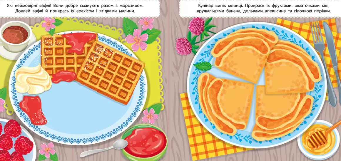 Разом із цією книжкою дитина потрапить на пікнік і зможе за допомогою наліпок разом з кухарем готувати перекуси на природі, страви на мангалі, неймовірні смузі та незвичні десерти. Видання містить великі тематичні ілюстрації страв і різноманітні наліпки для їхнього декорування. Книжка сприятиме розвитку фантазії, мовлення, уваги та дрібної моторики пальців рук. Видання призначене для спільної роботи дорослих з дітьми віком від двох років.