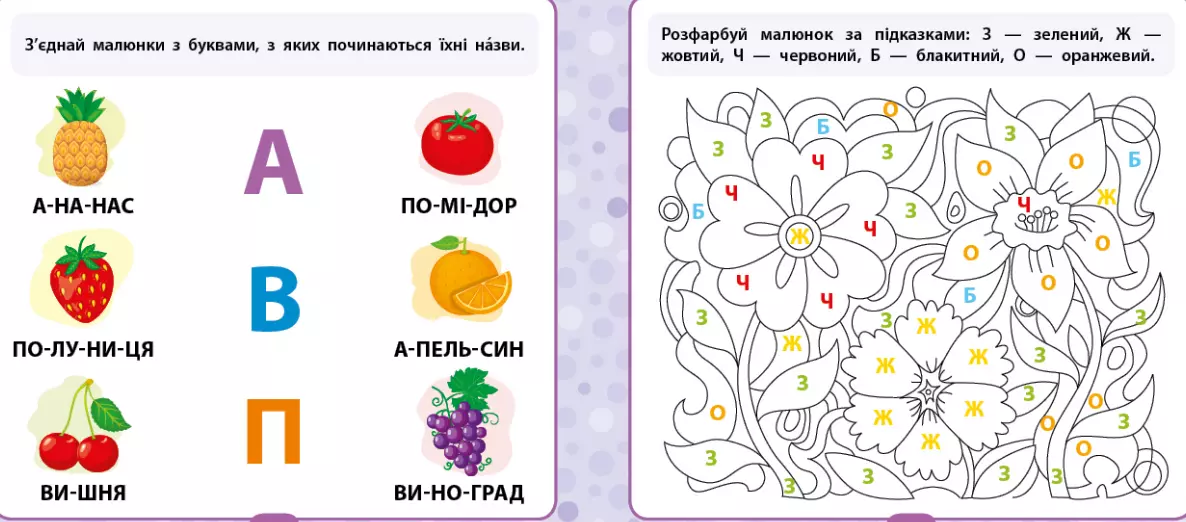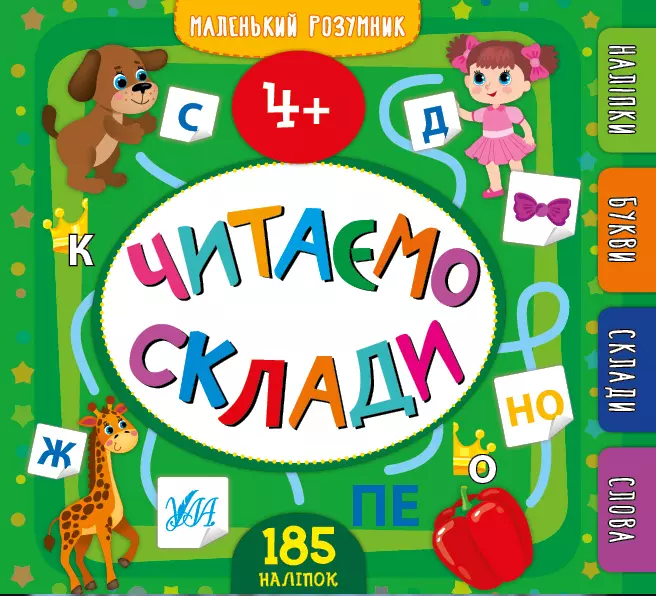 Ця книжка познайомить вашого малюка з буквами українського алфавіту, навчить вимовляти їх, поєднувати у склади та читати. Цікаві завдання, яскраві ілюстрації та велика кількість наліпок зроблять перші кроки до самостійного читання легкими та захопливими. Видання призначене для спільної роботи батьків з дітьми віком від чотирьох років.
