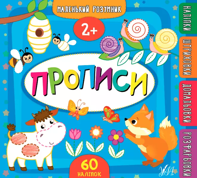 Ця книга познайомить вашого малюка з прописами. Видання містить вправи, які допоможуть розвинути графічні навички, творче мислення, а також пробудити інтерес до письма. Займаючись із цими прописами, малюк навчиться штрихувати, малювати прямі та хвилясті лінії, акуратно домальовувати та розфарбовувати картинки, що зробить заняття набагато цікавішими. Видання призначене для спільної роботи дорослих з дітьми від двох років.