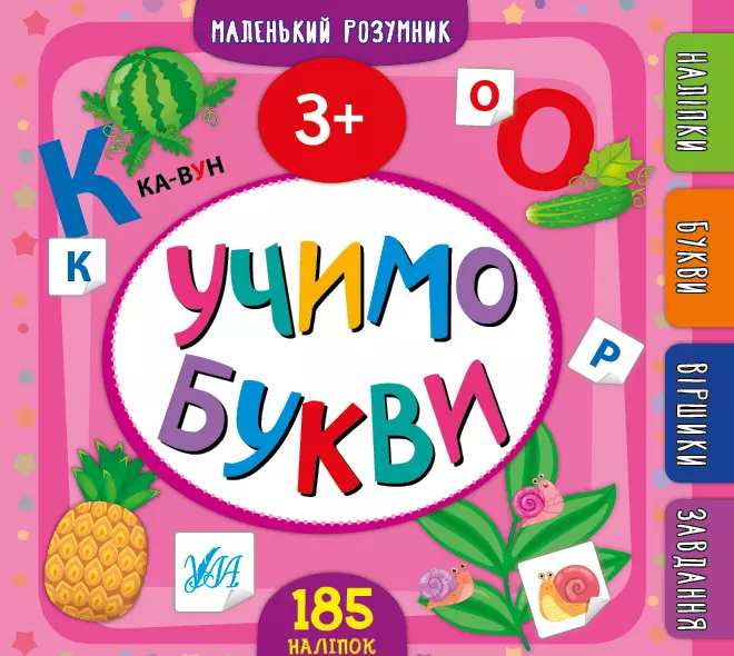 Ця книжка познайомить вашого малюка з буквами українського алфавіту, навчить вимовляти їх і легко впізнавати. Віршики, цікаві завдання та велика кількість наліпок зроблять процес знайомства з українською абеткою цікавим і захопливим. Видання призначене для спільної роботи батьків з дітьми віком від трьох років.