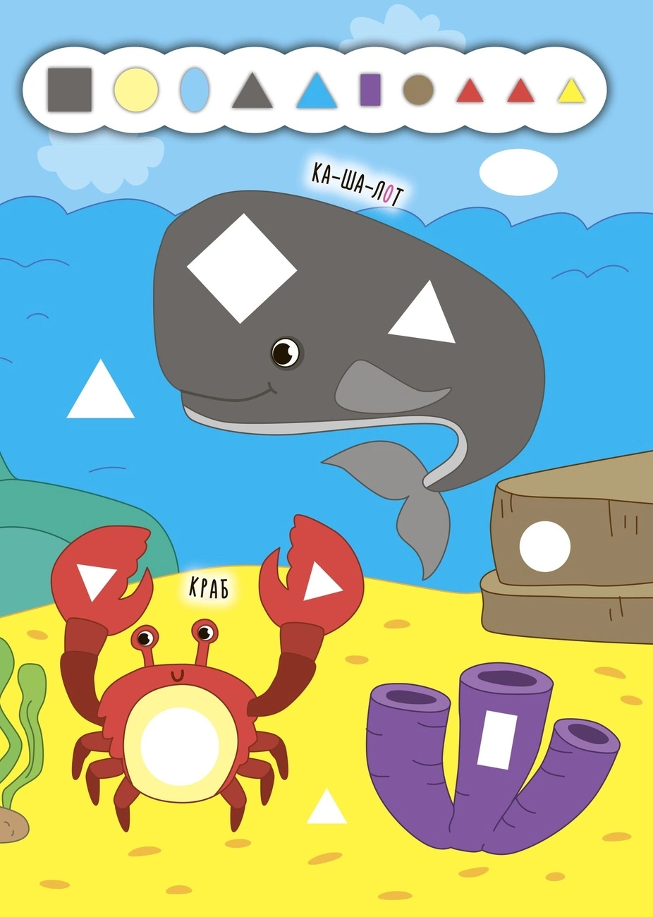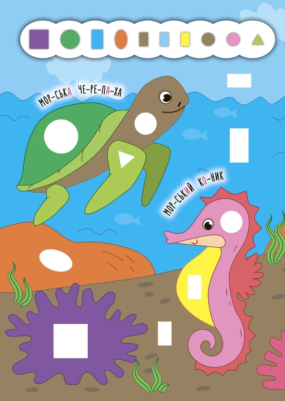 Книжка «Глибоке море» — унікальна можливість залучити дитину до пізнавальної та корисної гри, адже що може бути цікавіше за роботу з наліпками. Видання познайомить малюків з тваринами та допоможе удосконалити навички читання, адже всі підписи до малюнків поділено на склади. Також книжка містить великі яскраві ілюстрації та безліч геометричних наліпок, які потрібно добирати за формою та кольором. Перетворіть спільне дозвілля на корисно проведений час разом!