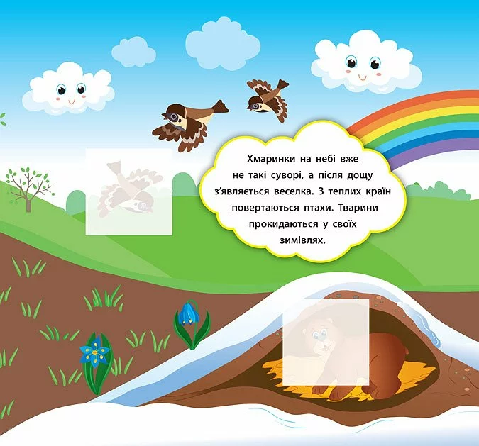 Ця книга познайомить дітей з порами року. Також видання навчить малюків розрізняти поняття цілого та його частини. За допомогою фрагментів-наліпок дитина зможе доповнювати яскраві картинки, а короткі розповіді на кожній сторінці допоможуть батькам зацікавити малюка й стануть гарним поштовхом до створення власних історій. Книга сприятиме розвитку логічного мислення, фантазії, мовлення, уваги та дрібної моторики пальців рук. Видання призначене для спільної роботи дорослих з дітьми віком від двох років.