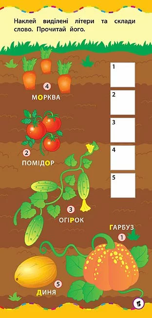 Із цією книгою ваша дитина легко та швидко запам’ятає букви українського алфавіту, навчиться впізнавати їх у словах, а також потренується утворювати склади та слова за допомогою наліпок. Видання призначене для спільної роботи дорослих з дітьми дошкільного віку.