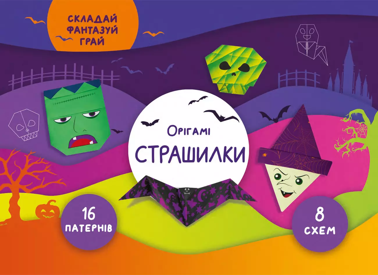 Уявіть, як усе заплутується у павутинні, а відьми варять чарівне зілля! До такого точно потрібно підготуватись. І орігамі «Страшилки» у цьому допоможуть. Кажани, вампір, гарбуз і ще багато чого справді моторошного. Прості та зрозумілі схеми, цікаве та веселе заняття! Орігамі розвивають: моторику рук; концентрацію уваги; просторову уяву; творче мислення.