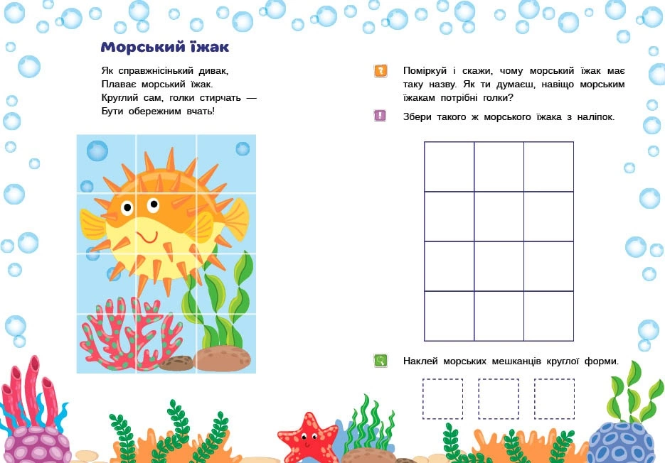 Це видання в ігровій формі познайомить малюка з тваринами. "Пазли з наліпок" - це не лише видання з наліпками, а й захопливі ігри з пазлами, які допоможуть дитині розвинути творчі здібності, увагу, посидючість і дрібну моторику пальців рук. Орієнтуючись на зразок, малюк має знайти потрібні наліпки та зібрати з них запропонований малюнок. До того ж дитина може прочитати веселі, пізнавальні, яскраво ілюстровані віршики та повправлятися в завданнях на розвиток уваги та фантазії.
