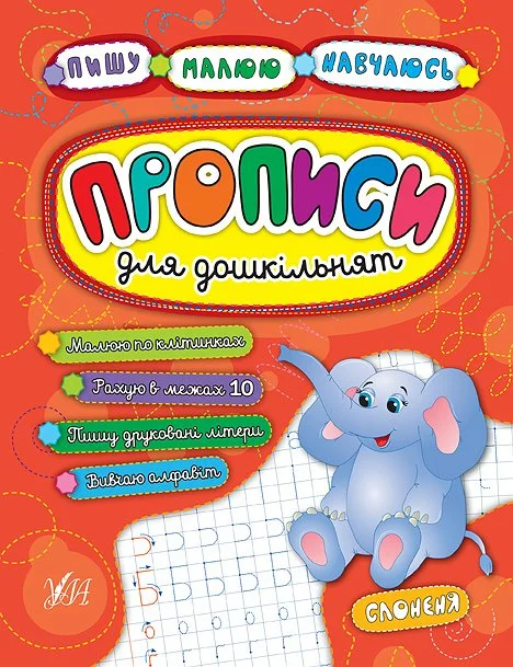 Книга Пишу. Малюю. Навчаюсь. Прописи для дошкільнят. Слоненя