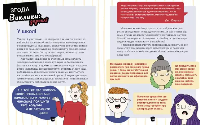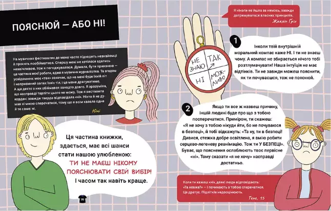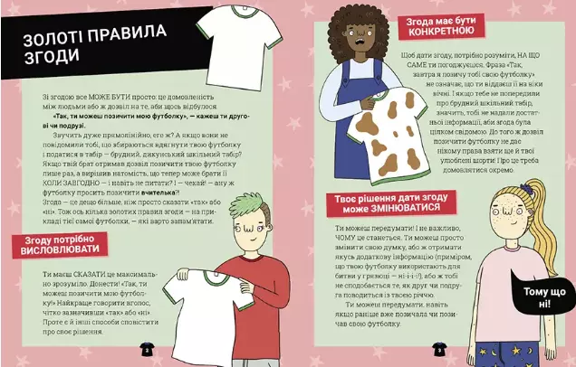 Унікальний путівник, який неодмінно допоможе вам осягнути правила культури згоди. Ця цікава, пізнавальна й легка для сприйняття книга стане в пригоді й кмітливим одинадцятиліткам, і допитливим чотирнадцятилітнім, і батькам, які хочуть допомогти своїм дітям знайти відповіді на безліч складних запитань.