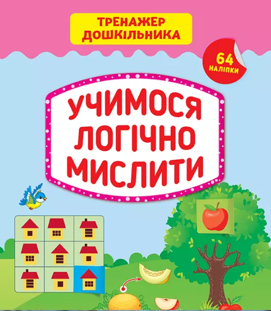 Тренажер дошкільника «Учимося логічно мислити» навчить малюка аналізувати й систематизувати матеріал, а також розвине логічне мислення та покращить пам’ять. Завдання посібників в ігровій формі допоможуть підготувати малюка до школи. Використання наліпок під час виконання вправ розвине увагу, пам’ять, мислення та покращить дрібну моторику пальців рук. Видання стане незамінним помічником для дошкільників, їхніх батьків і вихователів дошкільних закладів.
