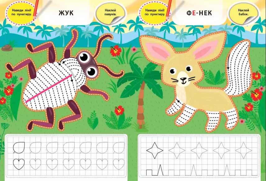 Ця книжка познайомить дитину з мешканцями лісу, навчить наводити об’єкти по пунктиру, штрихувати та малювати по клітинках. Малюк матиме можливість пройти захопливий лабіринт у вигляді їжака, а також вирізати рамочку для фото та змайструвати фігури лісових мешканців у форматі 2D. Яскраві ілюстрації та наліпки зроблять роботу більш цікавою. Видання допоможе покращити пам’ять, розвинути увагу й мислення, а також підготувати руку до письма.