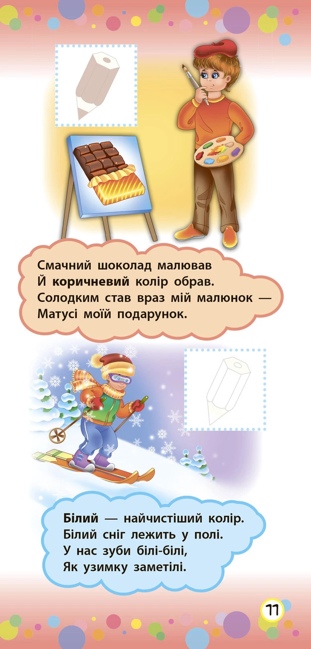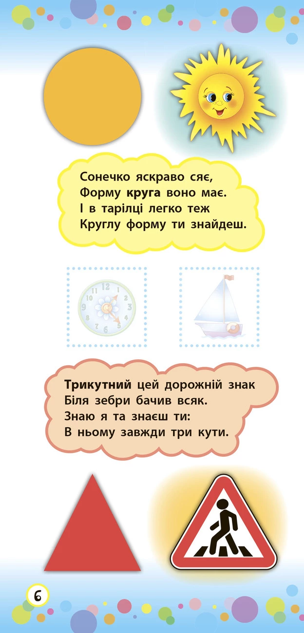Ця книжка у веселій і цікавій формі познайомить ваших дітей із цифрами, формами та кольорами. Пізнавальні віршики та яскраві картинки допоможуть малюкам легко й швидко, а головне — із задоволенням вивчити цифри, назви геометричних фігур і кольорів, а також розвинути зорове сприйняття, уяву та пам’ять. Робота з наліпками неодмінно приверне увагу малюка, урізноманітнить процес навчання та не дозволить нудьгувати. Перетворіть дозвілля дитини на цікаву гру!