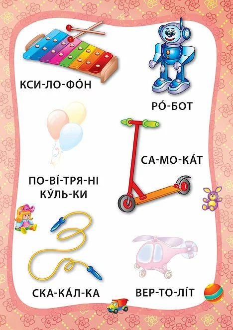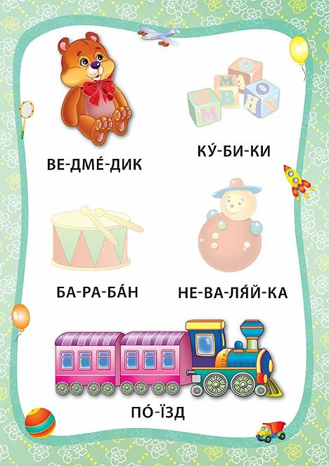 Ця книжка допоможе малюкам навчитися читати по складах і запам’ятати назви іграшок та одягу, розвинути дрібну моторику пальців рук, зорову пам’ять й увагу. Видання містить яскраві ілюстрації, тематичні наліпки й підписи до кожного малюнка. Крім того, слова поділені на склади та надруковані зручними для сприйняття великими літерами. Усе це зробить складний процес читання легким і захопливим.
