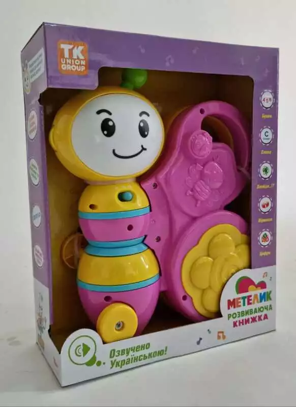 Книжка розвиваюча ""Метелик"" 35703 (12) ""TK Group"", ОЗВУЧУВАННЯ УКРАЇНСЬКОЮ МОВОЮ, дитячі пісні, мелодії, віршики, ігрові режими «Екзамен», в коробці