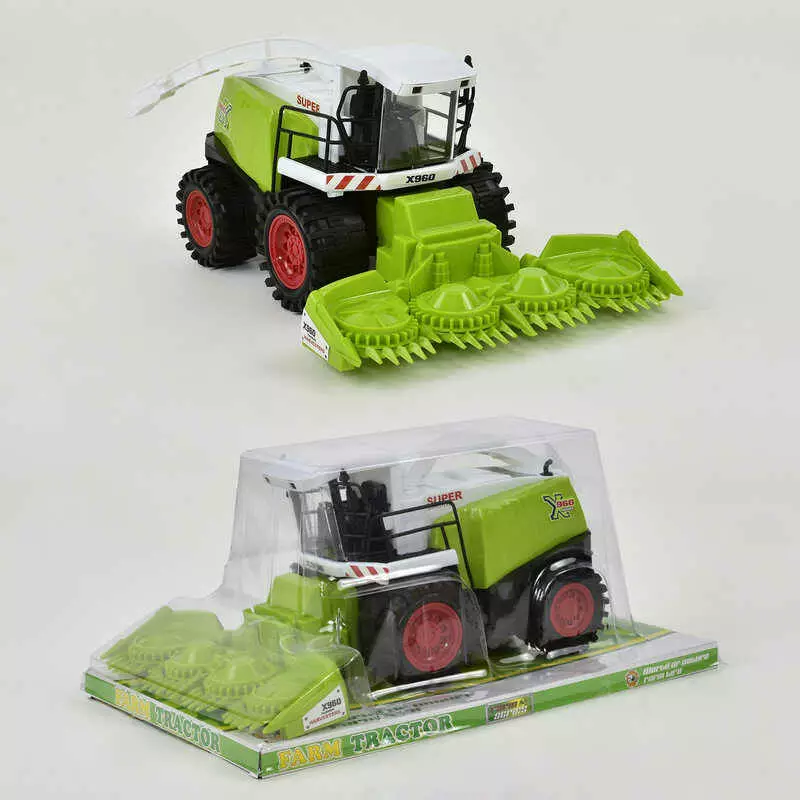 Любителі деталізованої спецтехніки напевно оцінять реалістичний комбайн 0488-290, призначений для збору врожаю в полях. Великий пристрій, встановлений спереду трактора, допомагає без особливих зусиль зібрати практично будь-яку культуру. Завдяки цікавому дизайну та потужному механізму інерції з таким комбайном буде цікаво та весело грати кожній дитині.