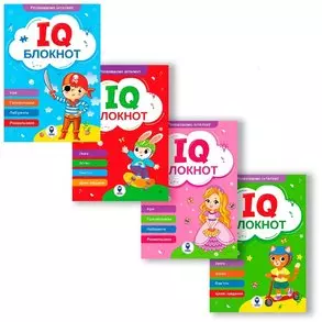 Серія «IQ блокноти» допоможе малечі підготуватися до школи та навчитися логічно мислити. Необхідні знання для дошкільнят! IQ блокноти – це поєднання гарного настрою, розваг і знань, необхідних для дошкільнят! Тут дитина зможе пройти різномантіні лабіринти, пошукати відмінності та просто розвинути дрібну моторику рук та уважність. Різноманітні ігри на уважність, яскарві ілюстрації та чітко сформульовані завдання — усе це допоможе дитинці якомога краще підготуватися до школи. Що розвиває серія: Логічне мислення; Уважність; Посидючиість; Кмітливість; Пам’ять; Дрібну моторику рук; Координацію рухів; Уяву. У комплект входять: Червоний блокнот; Блакитний блокнот; Зелений блокнот; Рожевий блокнот.