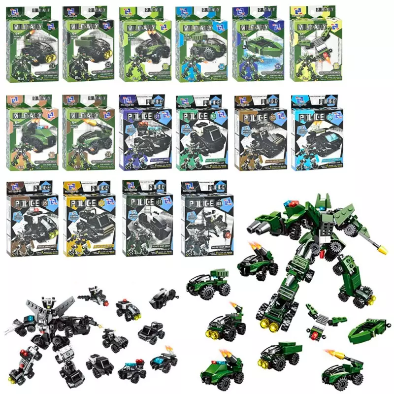 Конструктор 0868-59-0 військові, поліція, 8в1, від 19 до 27 дет., 16 видів, кор., 13,5-9,5-2,5 см.