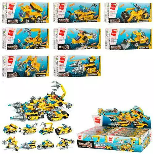 Конструктор 1408 транспорт, від 71 дет. , 8 шт. (8 видів) в диспл., кор., 43-20-9 см.