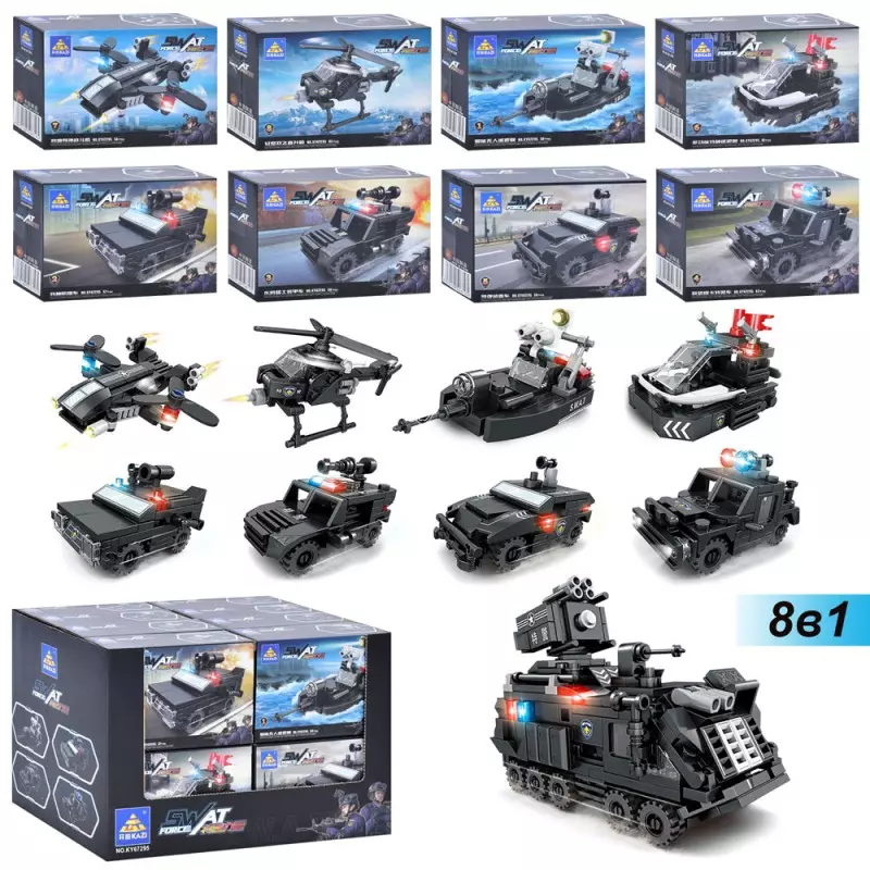Конструктор 67295 поліцейський транспорт, 8в1, від 50 дет., 16 шт. (8 видів) в диспл., 29-19-19 см.