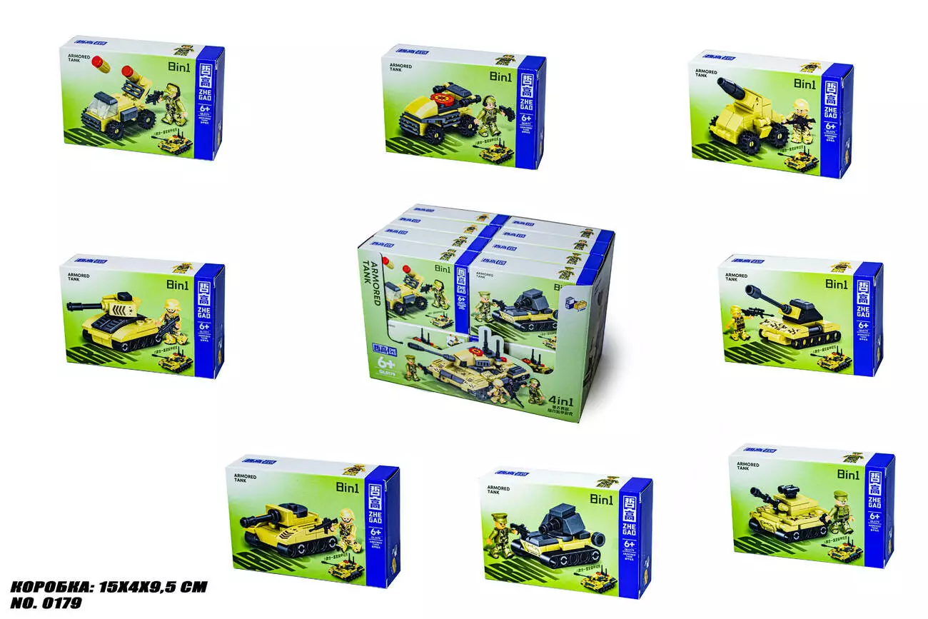 <p><em><strong>Конструктор Armored Tank 0179 8 в 1</strong></em></p><br /> <p><em><strong>Цена за 1 Вид</strong></em></p><br /> <p>Из одного вида можно собрать небольшую модель военной техники, если собрать все 8 видов, то можно собрать большой танк<br /><br /> Набор обязательно понравится каждому мальчику, и на несколько часов вовлечет его в интересную развивающую игру.Собирая конструктор, ребенок полностью погружается в увлекательный процесс, отлично развивающий логическое и аналитическое мышление, память, мелкую моторику, воображение.<br /><br /> </p><br />