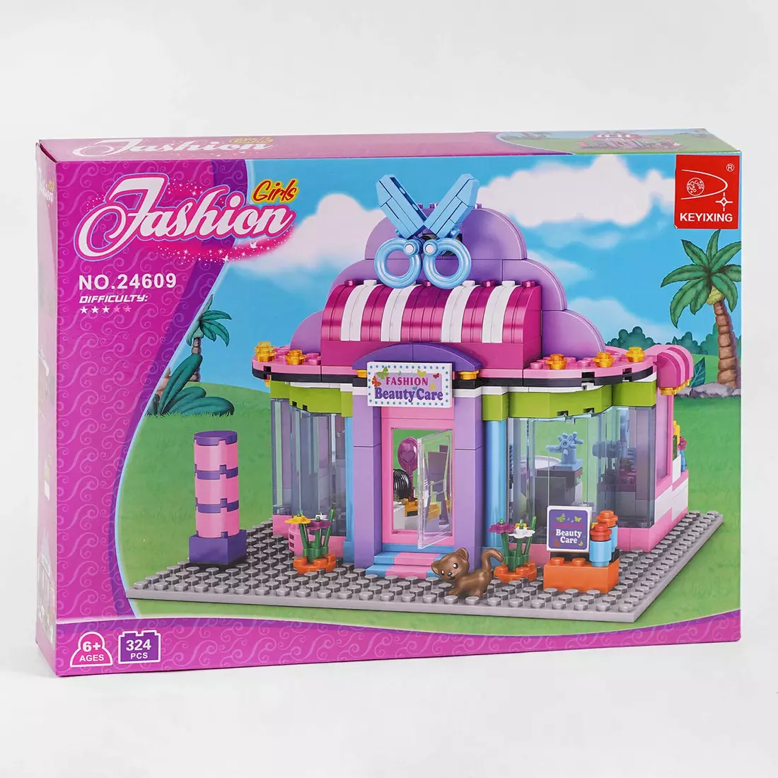 Тематика - салон краси; Серія - “Fashion Girls”; Кількість деталей - 324; Тип кріплення - пазовий; Розмір деталей - стандарт; Мінімальний вік - 6 років. Країна конструкторів “AUSINI” пропонує малечі власноруч долучитися до створення казкового рожевого світу. Тематичні конструктори - надзвичайно захопливий і цікавий вид іграшок. Варто лише дізнатися вподобання дитини, і він стане завжди вдалим подарунком до будь-якого свята. Збери свою казкову країну та щоразу насолоджуйся новою грою. Особливості: - виготовлений з міцного та безпечного для здоров’я дитини пластику; - у комплекті також представлена фігурка собачки; - приємна кольорова гамма; - тип складності - 3; - конструктор представлений у вигляді салону краси з прозорими вітринами.