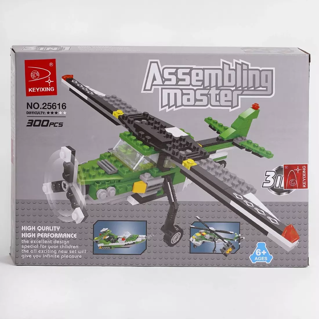 Тематика – транспорт; Серія – “Assembling Master”; Кількість деталей – 300; Тип кріплення – пазовий; Розмір деталей – стандарт; Мінімальний вік – 6 років. Конструктор “Assembling Master” дасть можливість дитині зібрати іграшку одразу в трьох варіантах. Поєднання елементів у певній послідовності допоможе створити швидкий катер, потужний гелікоптер або крутий літак. Особливості: - стильна кольорова гама; - конструктор поєднує у собі 3 варіанти збірки; - чудово деталізовані іграшки; - якісний, зносостійкий пластик; - рівень складності - 3.