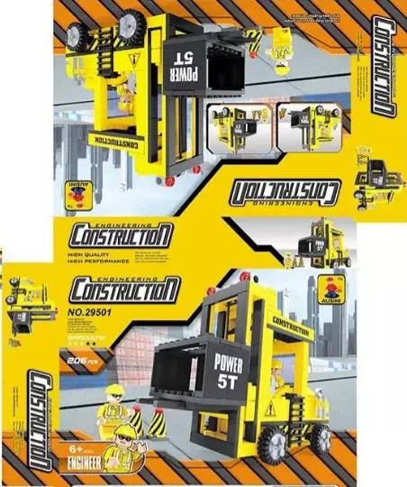 Кількість елементів може змінюватись виробником. Тематика – будівельна техніка; Серія - Engineering Construction; Кількість деталей – 210; Тип кріплення – пазовий; Розмір деталей – великий; Мінімальний вік – з 6ти років; Герої в наборі – 2 фігурки будівельників. ? З надзвичайно яскравим ігровим конструктором 29501 дитина зможе зібрати потужний вилковий навантажувач, адже без цієї техніки неможливо уявити справжні будівельні роботи. Така спецтехніка неодмінно забезпечить навантаження всіх необхідних матеріалів та стане гідним експонатом у дитячій колекції! Особливості: - відмінна деталізація та рухомі елементи; - спецтехніка забарвлена в сигнально-жовтий колір; - всі ігрові елементи виготовлені із первинної пластмаси, безпечної для здоров'я дітей; - рівень складності - 3; - колеса виконані з гуми та доповнені протекторним малюнком, це необхідно для стійкості та маневровості спецтехніки; - комплект доповнений тематичними аксесуарами.