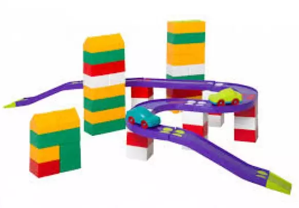 Дитячий конструктор "Авто Блок" №2 (52 деталі) Colorplast. Дозволяє зібрати барвистий автотрек. Машинка у комплекті. Сприяє розвитку логічних навичок, удосконаленню кмітливості та дрібної моторики рук.