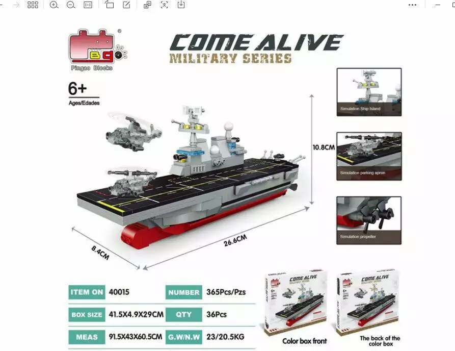 <p><em><strong>Конструктор Come Alive 40015 Aircraft Carrier</strong></em></p><br /> <p>Юные ценители серьезной техники будут в восторге от новой игрушки - мощного авианосца. Этот конструктор отличается не только своей тематикой, но и тем, что он приносит на свет военные истории. Ваши маленькие стратеги смогут не только собрать свой собственный авианосец, но и отправиться в увлекательное путешествие, создавая свои сценарии сражений и побед!</p><br /> <p><strong>Особенности:</strong></p><br /> <ul><br /> <li>отличная детализация и подвижные элементы;</li><br /> <li>подвижная пушка;</li><br /> <li>подвижные винты;</li><br /> <li>вертолёт на борту</li><br /> <li>количество деталей: 365 шт.</li><br /> </ul><br /> <p>Авианосец - класс боевых кораблей, предназначенный для базирования на борту и боевого применения авиационных групп в морских акваториях, в том числе удаленных от места базирования авианосца. Иными словами авианосец представляет собой мобильную авиабазу, действующую в открытом море.</p><br />