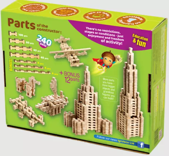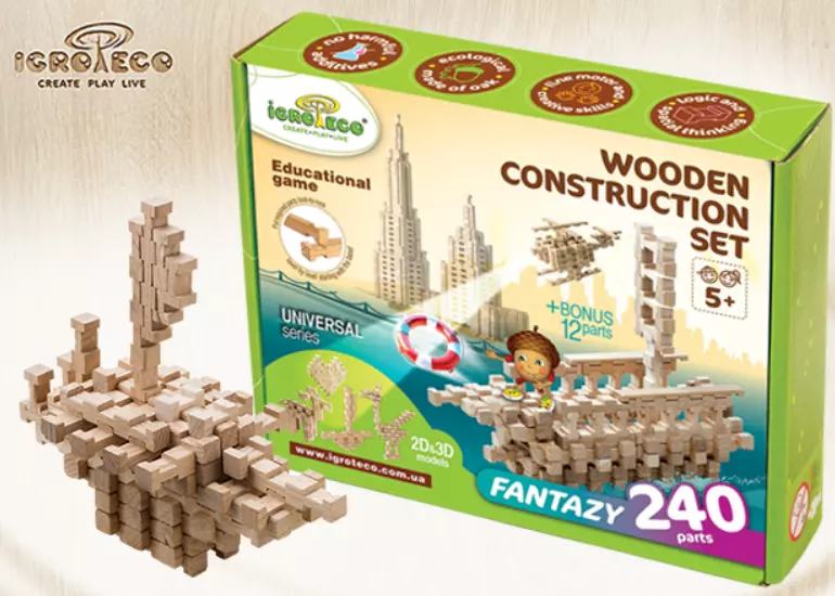 Конструктор «ФАНТАЗІЯ 240» — чудовий спосіб для дитини провести час весело та з користю від "Igroteco"! Цей універсальний конструктор має справді казкові можливості! Він не обмежує дитину будь-якими рамками, даючи змогу реалізовувати найрізноманітніші її задуми! Якщо ж знадобляться додаткові деталі — їх завжди можна буде докупити в наборах по 60, 120 та 240 деталей. Уверсальність конструктора ФАНТАЗІЯ виражається в можливості створювати як і прості мозаїчні (2D), так і складні об'ємні фігури (3D), що дозволяє гратися з ним дітям різного віку. Вони здатні надовго заволодіти увагою вашого малюка, дозволяючи споруджувати і проектувати безліч цікавих моделей.