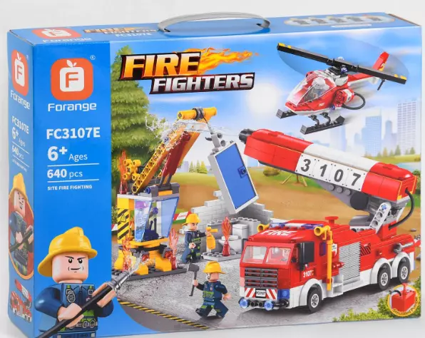 Тематика - пожежа на будівельному майданчику; Серія - Fire Fighters; Кількість деталей - 640; Тип кріплення - пазовий; Розмір деталей - стандарт; Мінімальний вік - 6 років; Герої в наборі - 5 героїв. ? Конструктор FC 3107 E від Forange Block це набір для сюжетно рольових ігор з якісними деталями. У набір входить 640 деталей з яких дитина зможе зібрати постановку по рятувальної операції. Головна особливість набору - помпове накачування води. Пожежна машина обладнана спеціальним блоком, в який вбудований помповий механізм, за рахунок чого транспорт дійсно буде бризкати водою. Кран збирається за 10 кроків. Вертоліт за 16 кроків. Пожежна машина збирається за 47 кроків. Комплектація набору: - деталі конструктора; - 5 героїв; - піпетка; - наліпки; - інструкція.