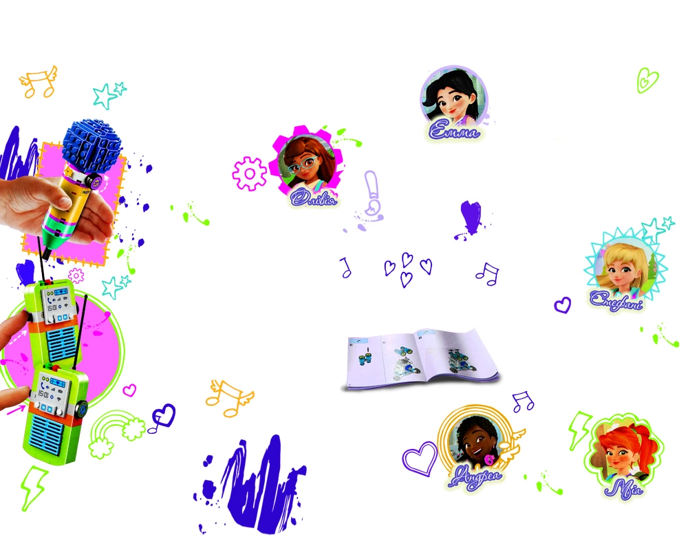 Прояви фантазію та створи дивовижні й захопливі сюжети для ігор з подружками. Збери п’ять аксесуарів у натуральну величину за допомогою деталей конструктора. П’ять подружок – п’ять пристроїв. Вибери свій предмет, а усі інші віддай друзям. Будь як героїні Хартлейк-Сіті. Кількість деталей: 631