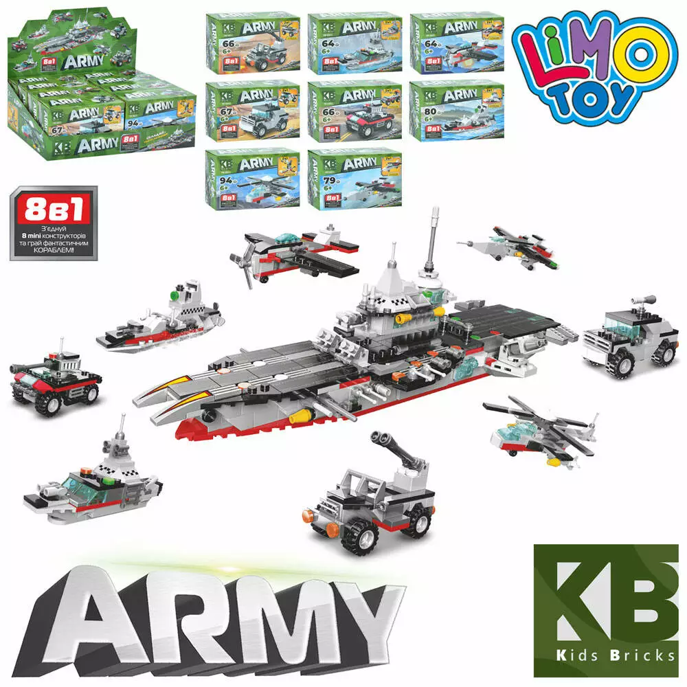 Конструктор KB 2001 військова техніка, 8 видів (від 64 дет.), кор., 8в1, 8 шт. в диспл.,29-10-17,5см