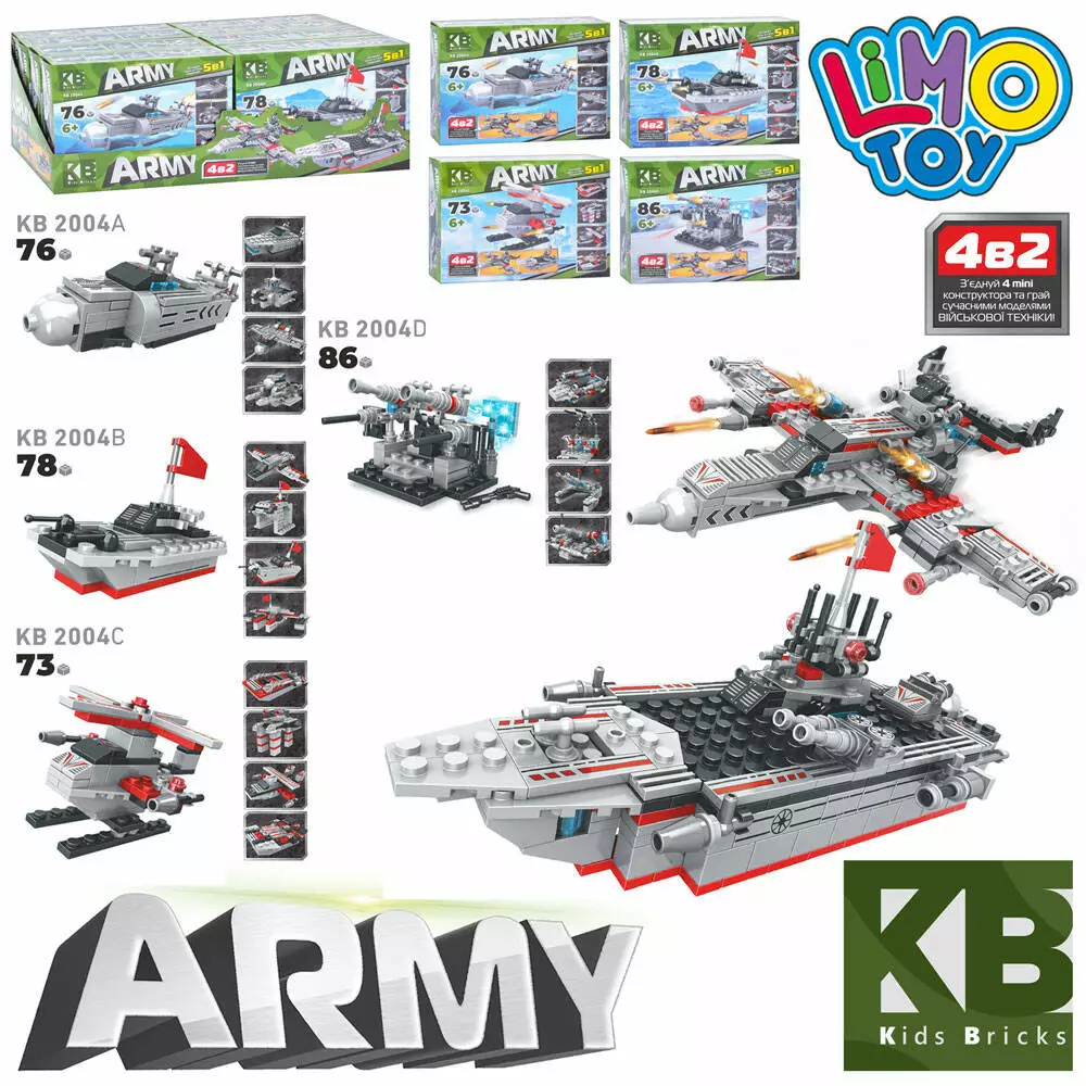 Конструктор KB 2004 військовий техніка, 4в1, від 73 до 86 дет., 4 види, 8 шт. в диспл., 39-17-14 см.