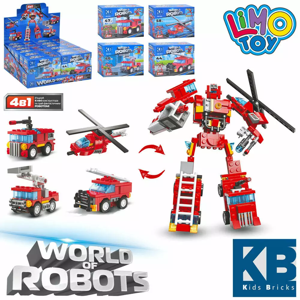 Конструктор KB 215 пожежна серія, 2в1, від 44 дет., інерц., 12 шт. (4 види) в диспл., 29-25-12 см.