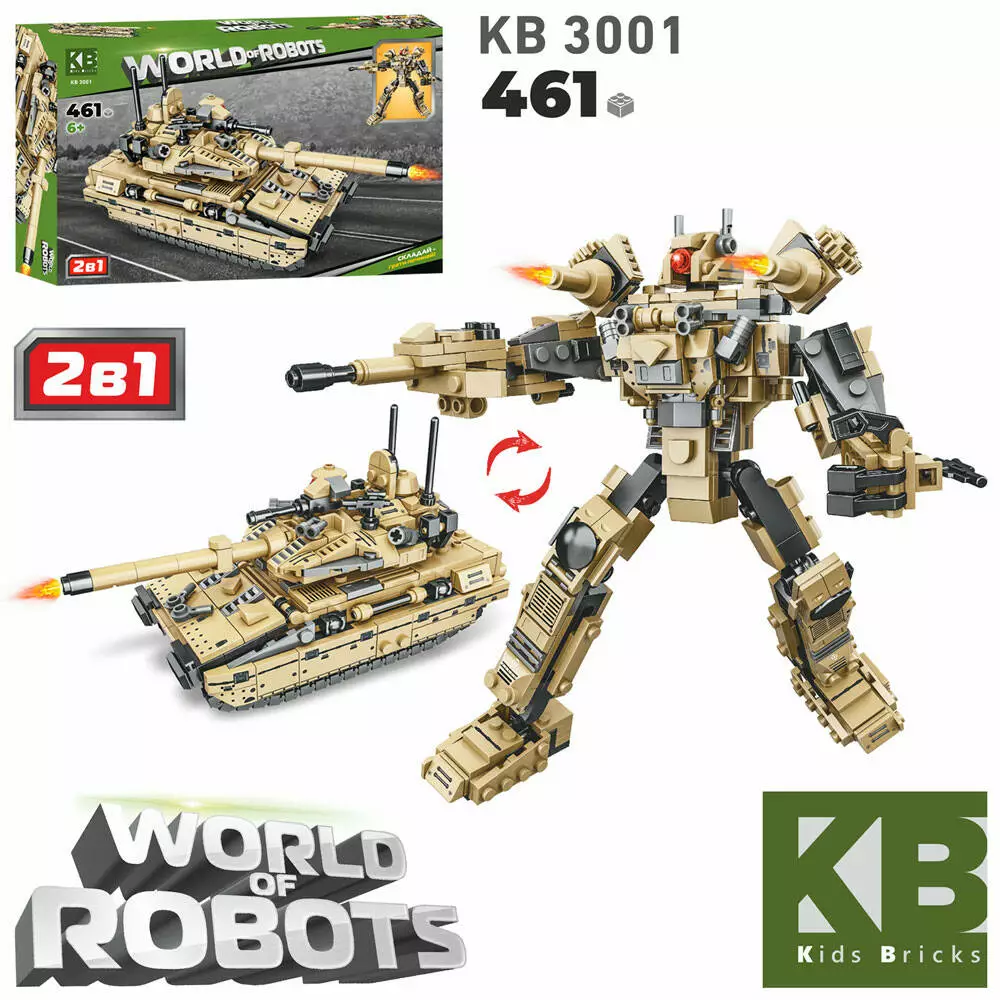 Конструктор KB 3001 військова техніка, 2в1 (танк, робот), 461 дет., кор., 50-32-7 см.