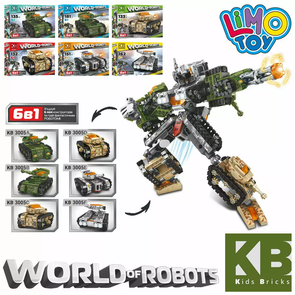 Конструктор KB 3005 військовий транспорт, 6в1, від 132 дет., 6 шт. (6 видів) в диспл., 27-22-16,5 см