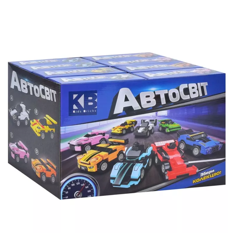 Конструктор KB 6001 машинки, інерц., від 45 дет., 16 шт. (8 видів) в диспл., 30-20-17 см.