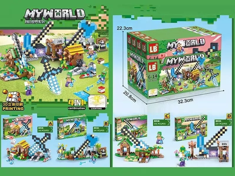 Кількість елементів може змінюватись виробником. Тематика - комп’ютерна гра. Серія - "My World". Середня кількість деталей - 230-250. Тип кріплення - пазовий. Розмір деталей - стандарт. Мінімальний вік - 6 років. Особливості: - конструктор відмінно розвиває дрібну моторику, логічне мислення, послідовність дій та посидючість; - представлений у форматі відомої комп’ютерної гри; - ігровий набір чудово деталізований, кожна його деталь максимально опрацьована; - з 4 наборів можна скласти додатковий ігровий простір; - у комплекті з конструктором представлена покрокова інструкція.