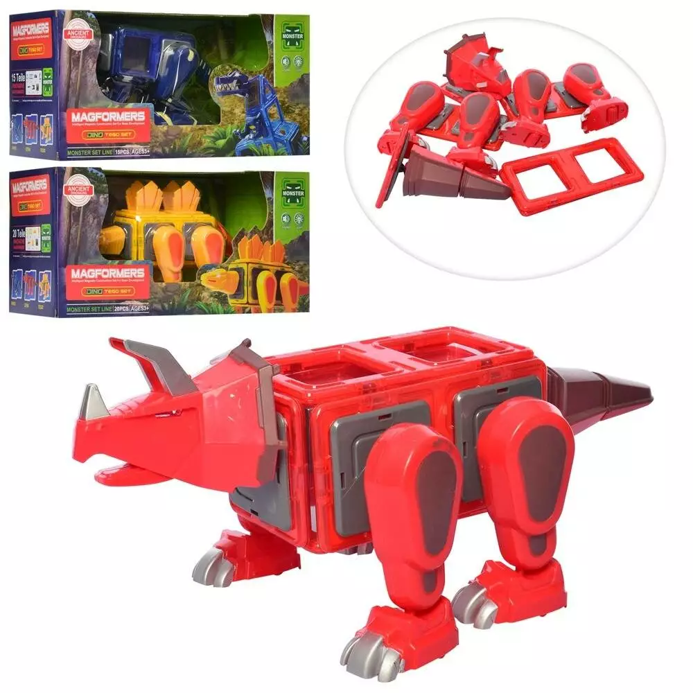 Конструктор LQ623-4-5 магнітний, динозавр, 3 види, муз., світло, бат.(табл.), кор., 41,5-19-19 см.