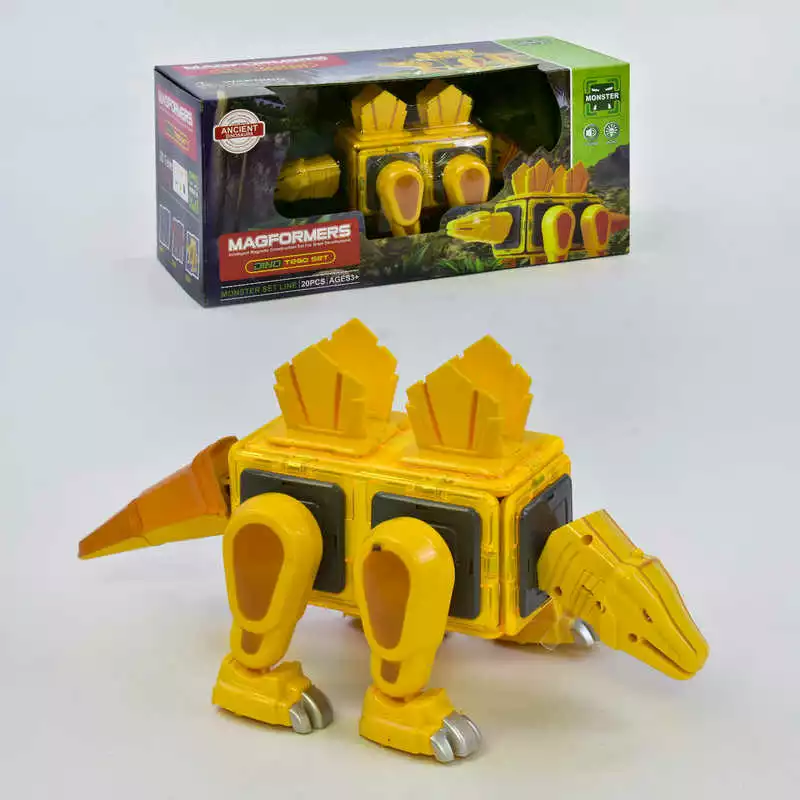 Конструктор магнітний LQ 625 Динозавр, 20 деталей, світло, звук, в коробці