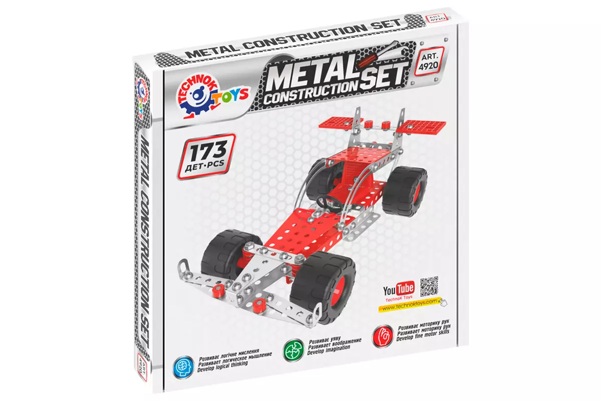 Традиція металевих конструкторів бере свій початок далекому 18 ст. На цих конструкторах виросло багато поколінь відомих винахідників, механіків і інженерів. Завдяки цій іграшці хлопчаки (і дівчата) отримують перші навички з'єднання деталей гвинтами і гайками, розвивають фантазію і просторову уяву. Модель "Авто-Дакар ТехноК" розроблена за мотивами всесвітньої гонки. Крім моделі "Авто-Дакар" з цього набору деталей юний інженер зможе зібрати і інші моделі, які підкаже йому фантазія. Вага 463 г Габаритні розміри 20.5 х 16 х 5 см Розміри упаковки 45 х 23 х 19 см