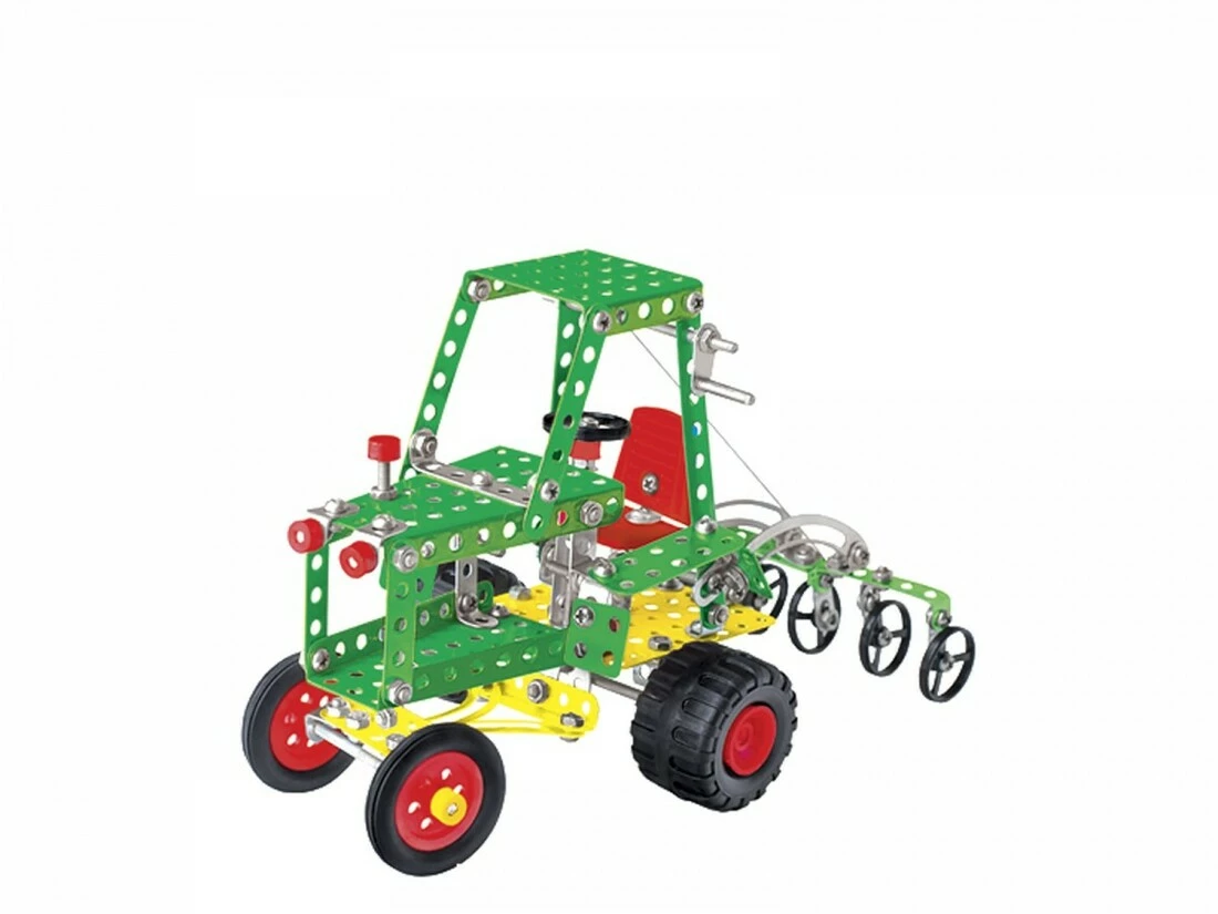 Металевий конструктор (253 деталей) із розширеними дизайнерськими можливостями завдяки цікавим різноколірним пластиковим деталям. В комплекті покрокові кольорові інструкції для збирання моделей фермерської техніки. Перевага іграшки - металеві деталі різних кольорів. Характерна особливість - пластиковий пенал для зберігання конструктора в розібраному стані. За допомогою цього конструктора дитина розвиватиме фантазію, складаючи різні моделі, та отримає практичні навики роботи з металевими виробами, що стануть доречними у дорослому житті.
