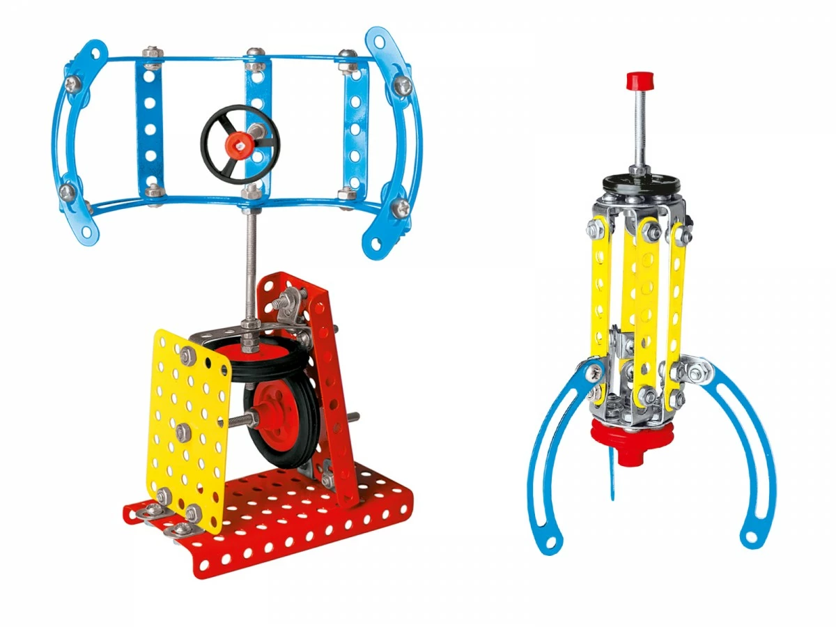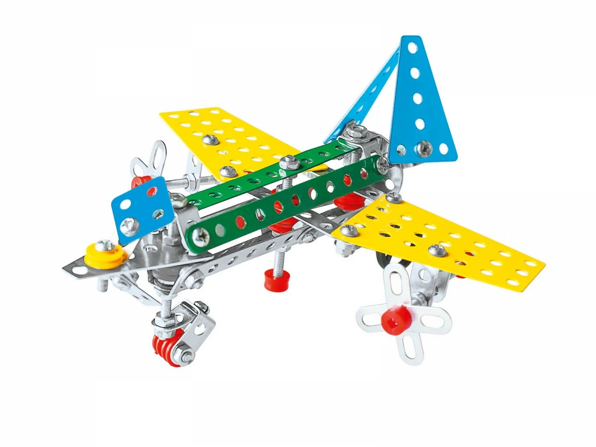 Металевий конструктор (225 деталей) із розширеними дизайнерськими можливостями завдяки цікавим різноколірним пластиковим деталям. Комплектація "Космічна техніка", покрокові кольорові інструкції для збирання моделей космічної техніки. Перевага іграшки - металеві деталі різних кольорів. Характерна особливість - пластиковий пенал для зберігання конструктора в розібраному стані.
